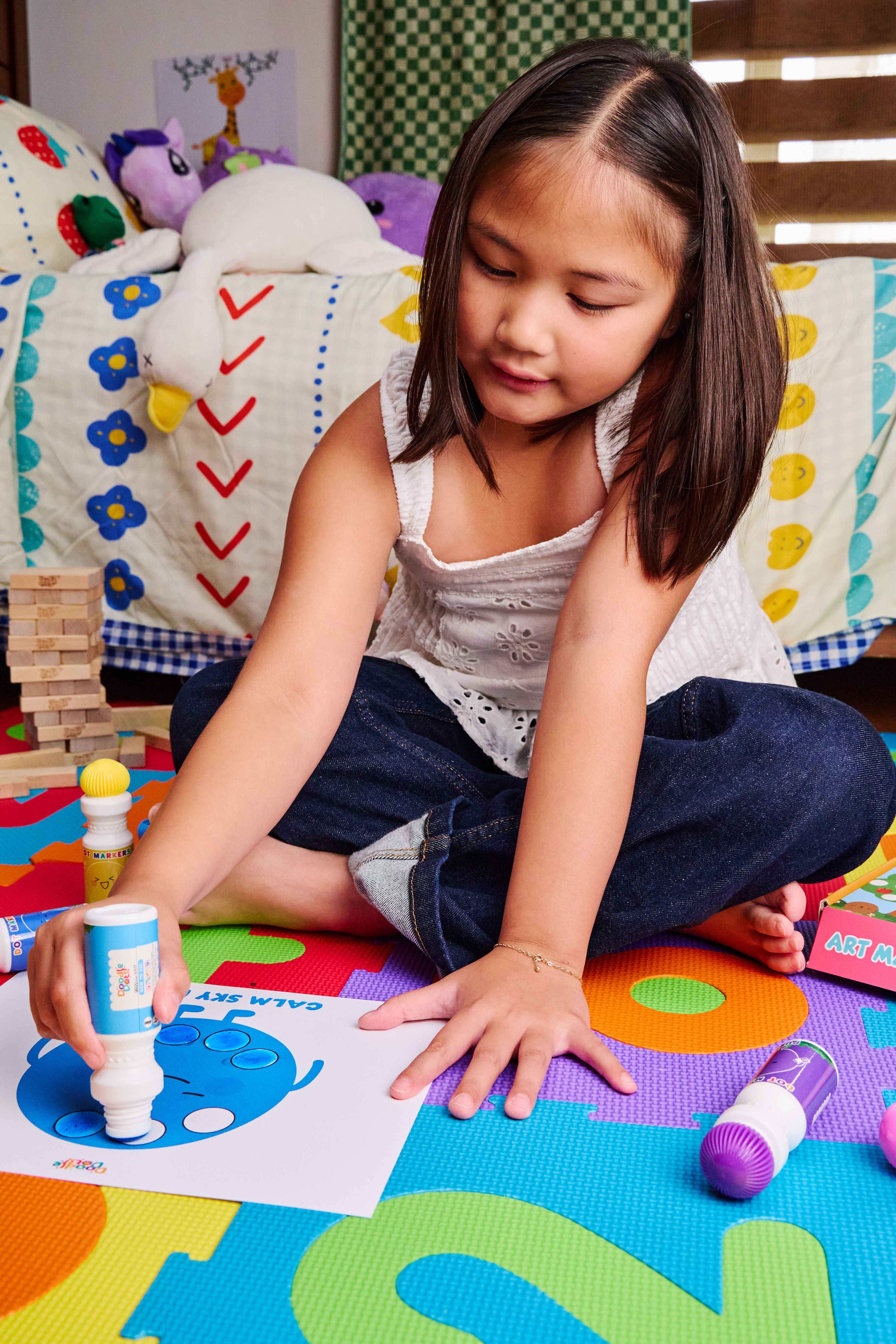 Dot markers are washable and low-mess with proper use. For extra peace of mind, have your child wear play clothes so they can focus on the fun!